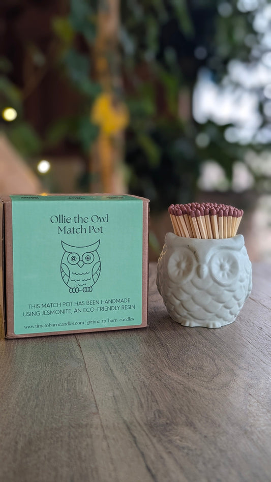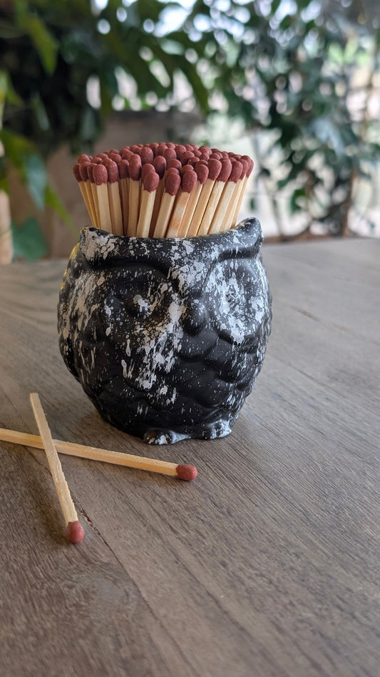 Ollie the Yellow and Black Marbled Owl Match Jar