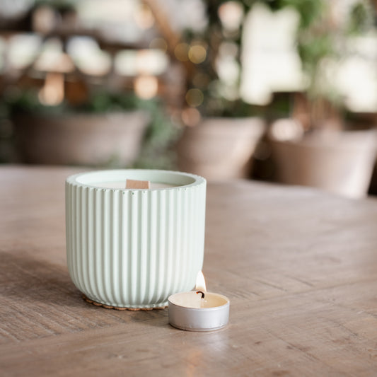 Each candle is housed in a handcrafted, eco-conscious Jesmonite vessel, designed to be beautiful, durable, and repurposed long after the final burn