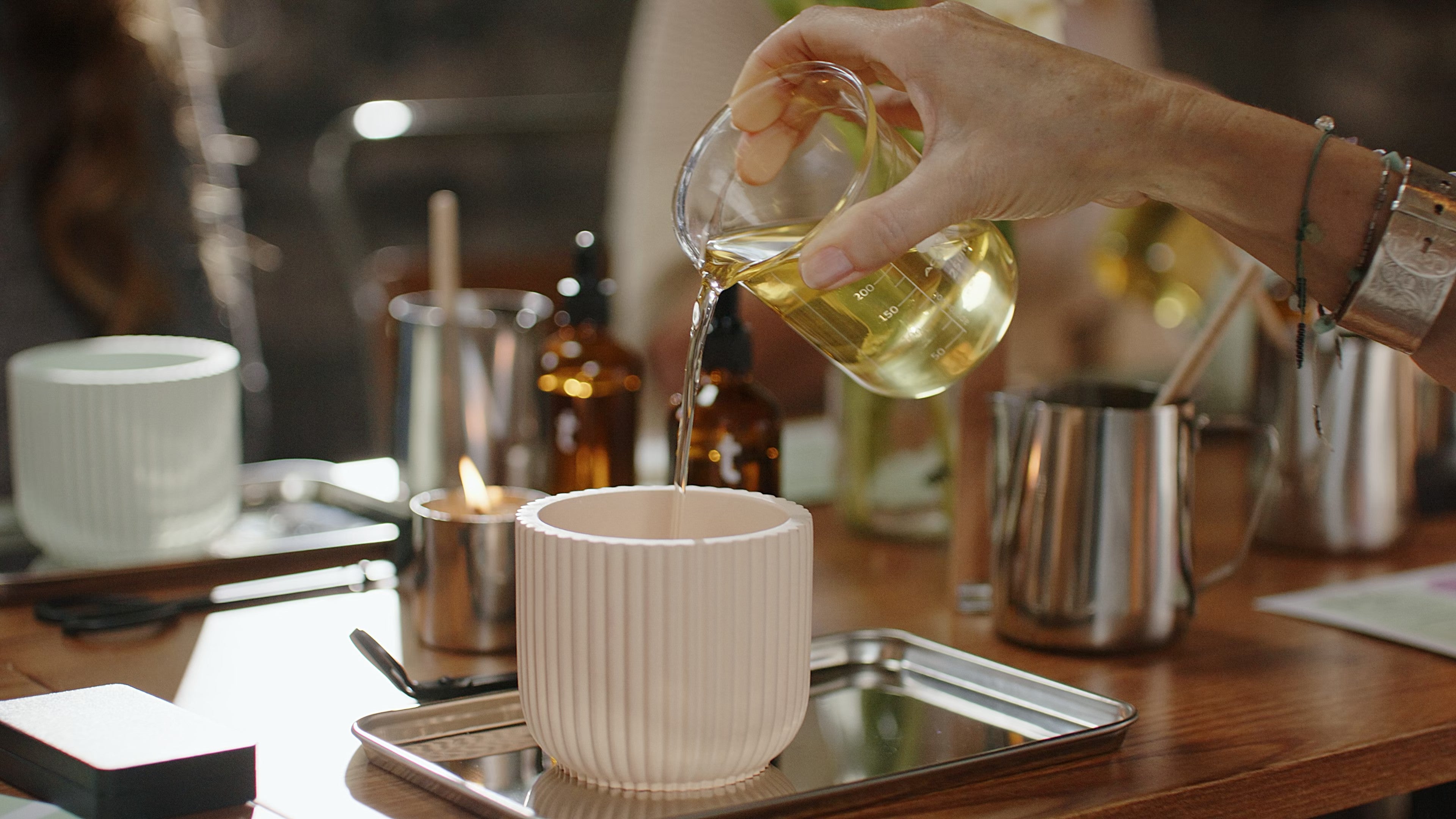Guests create their own scent blend using essential oils, and pour it into one of our handmade candle jars.