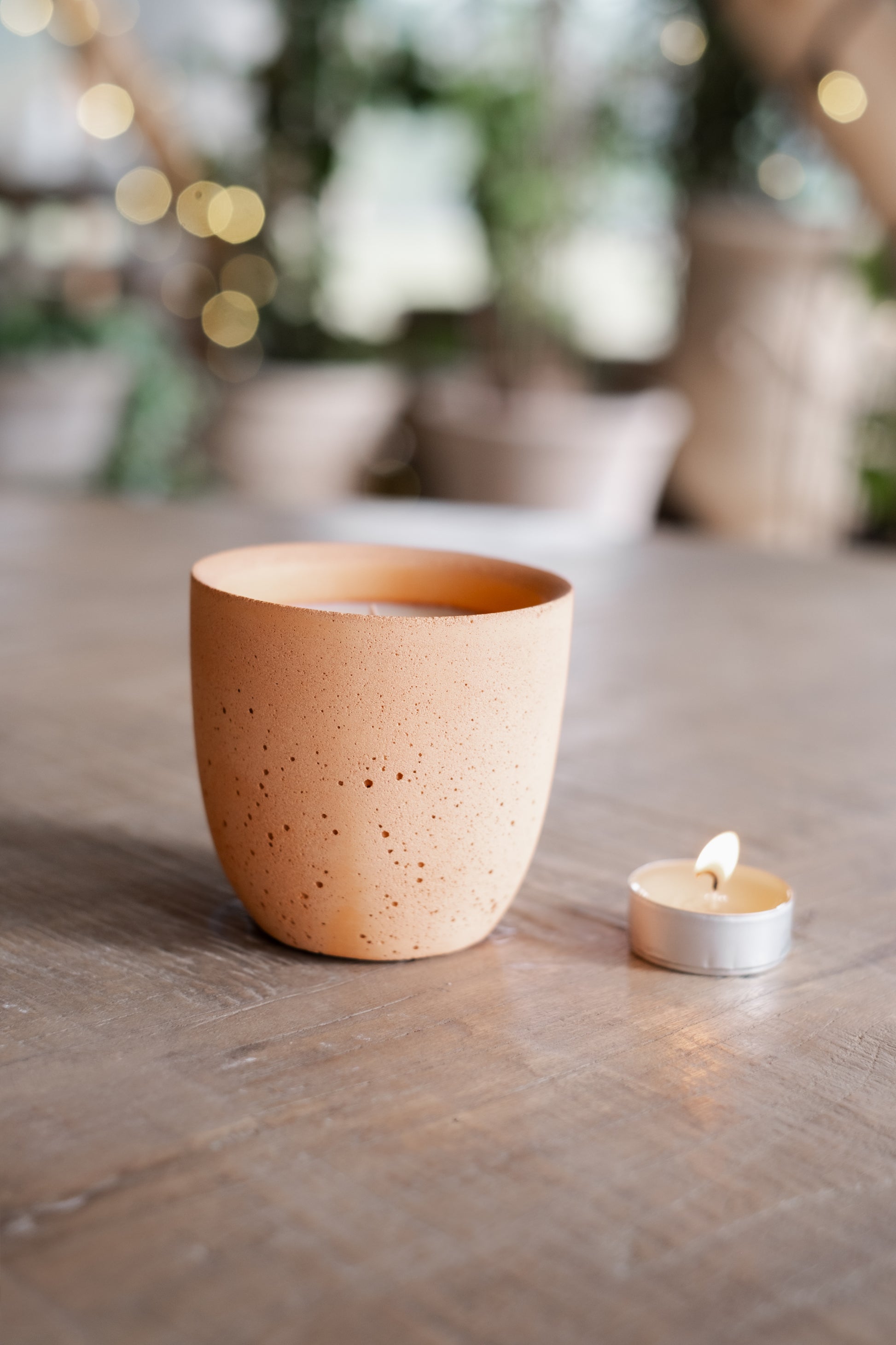 This candle jar has been completely handmade using jesmonite, a sustainable and sturdy, flame-resistant material - it's made from gypsum, a natural mineral. The source material is natural and has a low-energy manufacturing process, making it a very sustainable material.