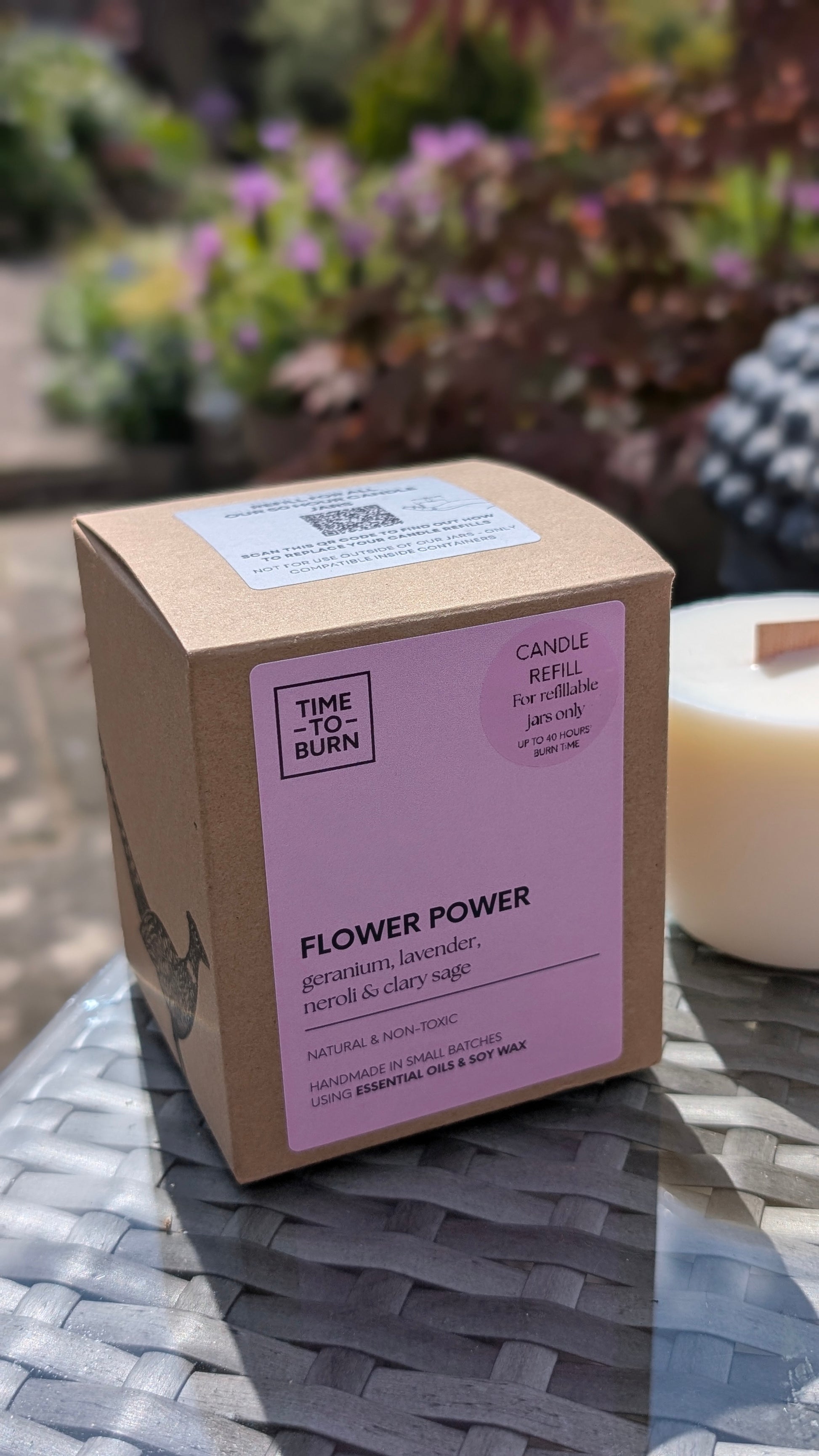 All of our packaging is recyclable & your candle refill comes wrapped in beautifully hand-stamped floral recyclable brown paper.