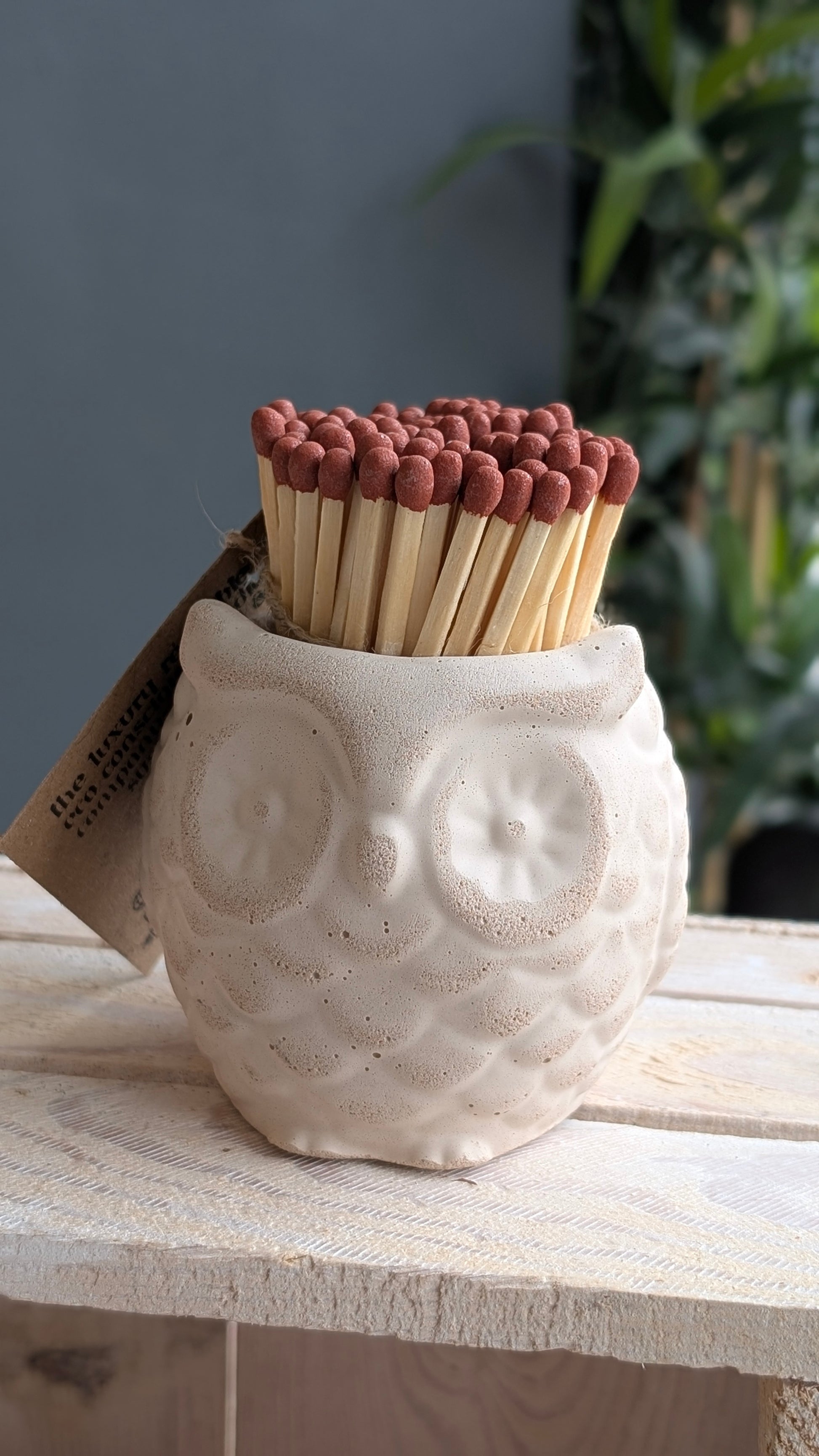 Ollie has been handmade using jesmonite, an eco-friendly resin, and he has a match striker underneath