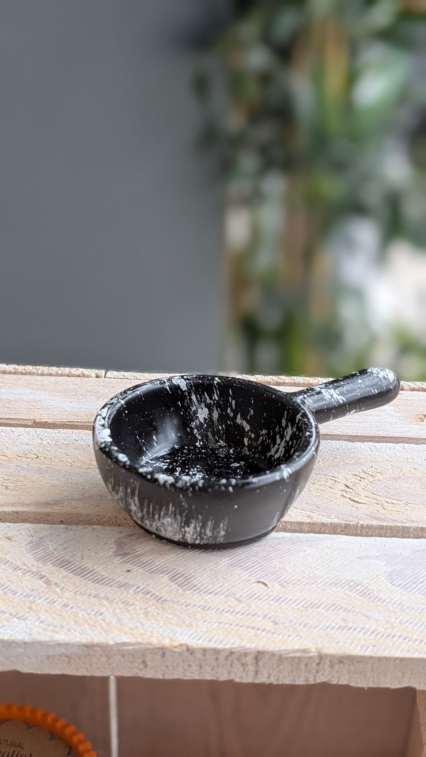 Black with white marbling. This comes as either a tealight holder on its own or with 8 Black Pepper, Nutmeg and Ginger Tealights to match! Note these are our 4 hour disposable tealights (not refillable).