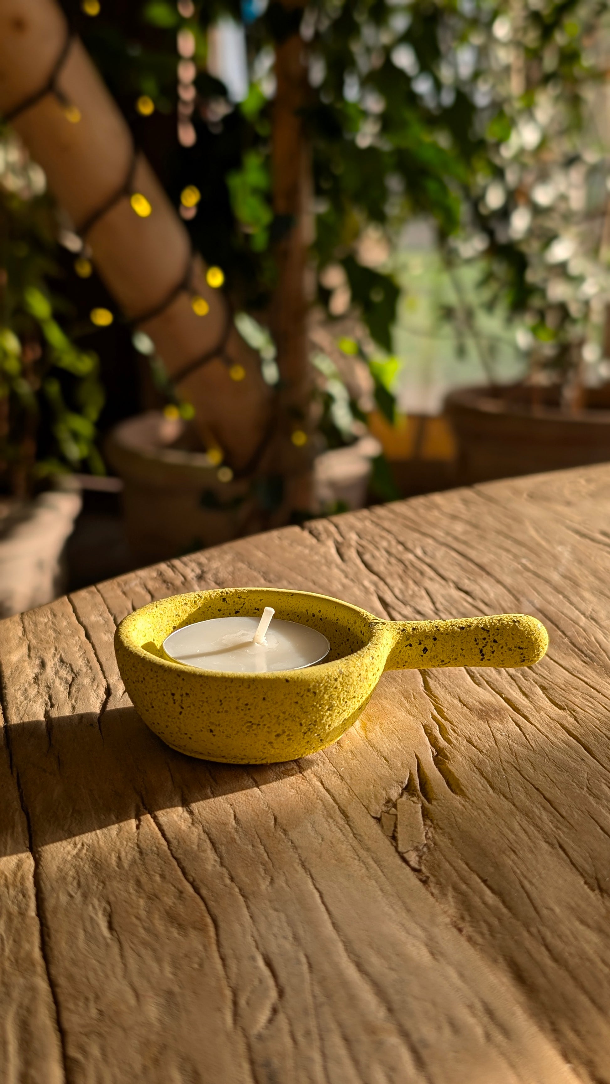This cute little tealight holder is handmade in our studio, with jesmonite, a durable, eco-friendly and sustainable material that I would liken to a softer concrete. It has been sealed with a water-proof sealant and so it will withstand any dribbles!