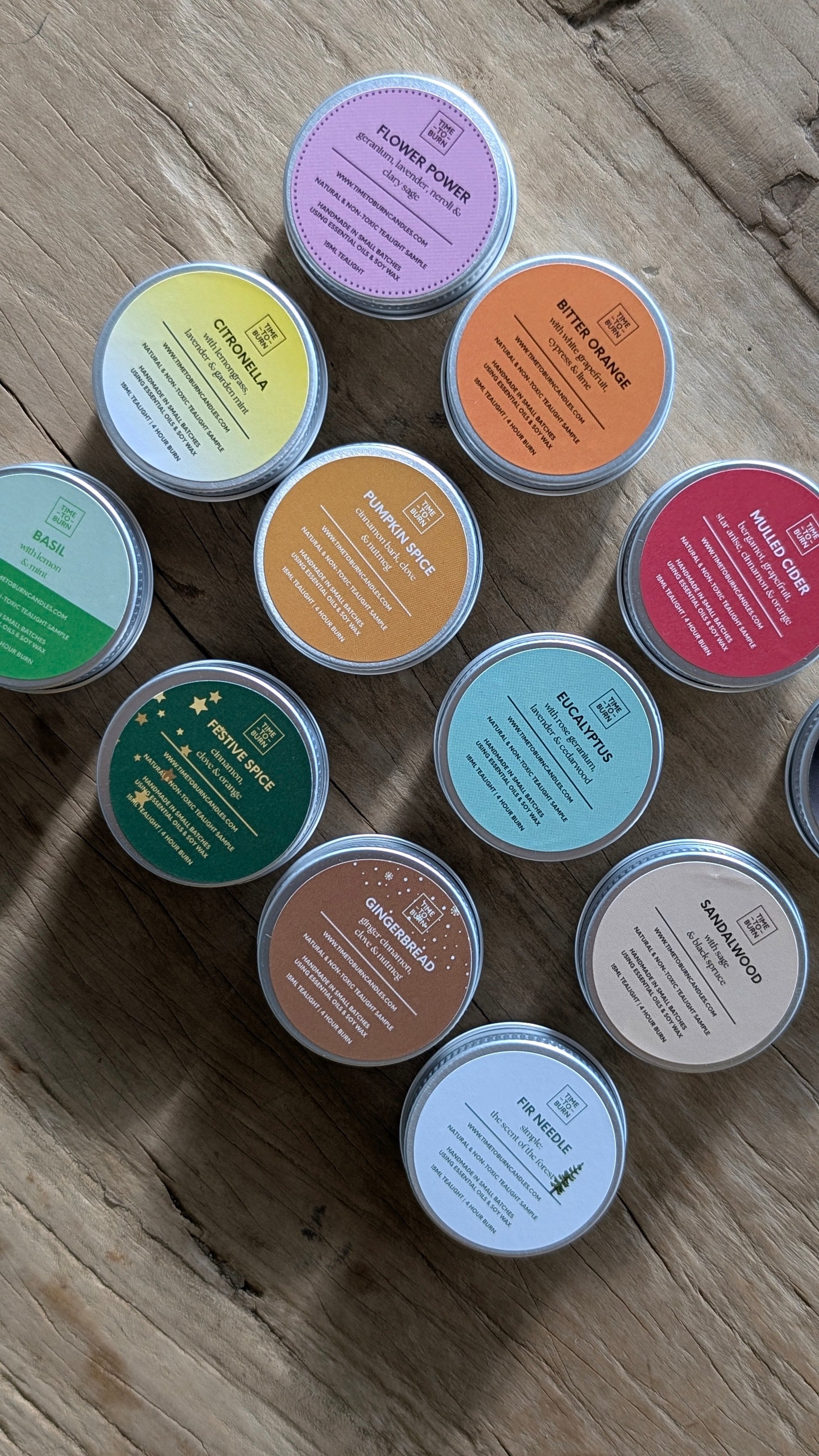 Our tealights are handmade using soy wax and our scents blends have been uniquely created with natural essential oils natural essential oils in our candle kitchen. They are non-toxic and contain no parabens.
